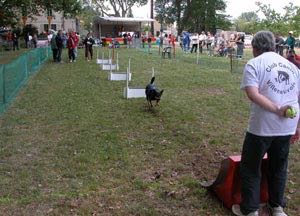 Le principe est simple : le chien effectue seul un parcours rectiligne composé d’une série de 4 haies au bout duquel est positionné une boîte (le lanceur) comportant un dispositif de déclenchement sur lequel il doit appuyer, entrainant ainsi l’éjection d’une balle qu’il attrape et rapporte à son maître en sautant les mêmes 4 haies en sens inverse.